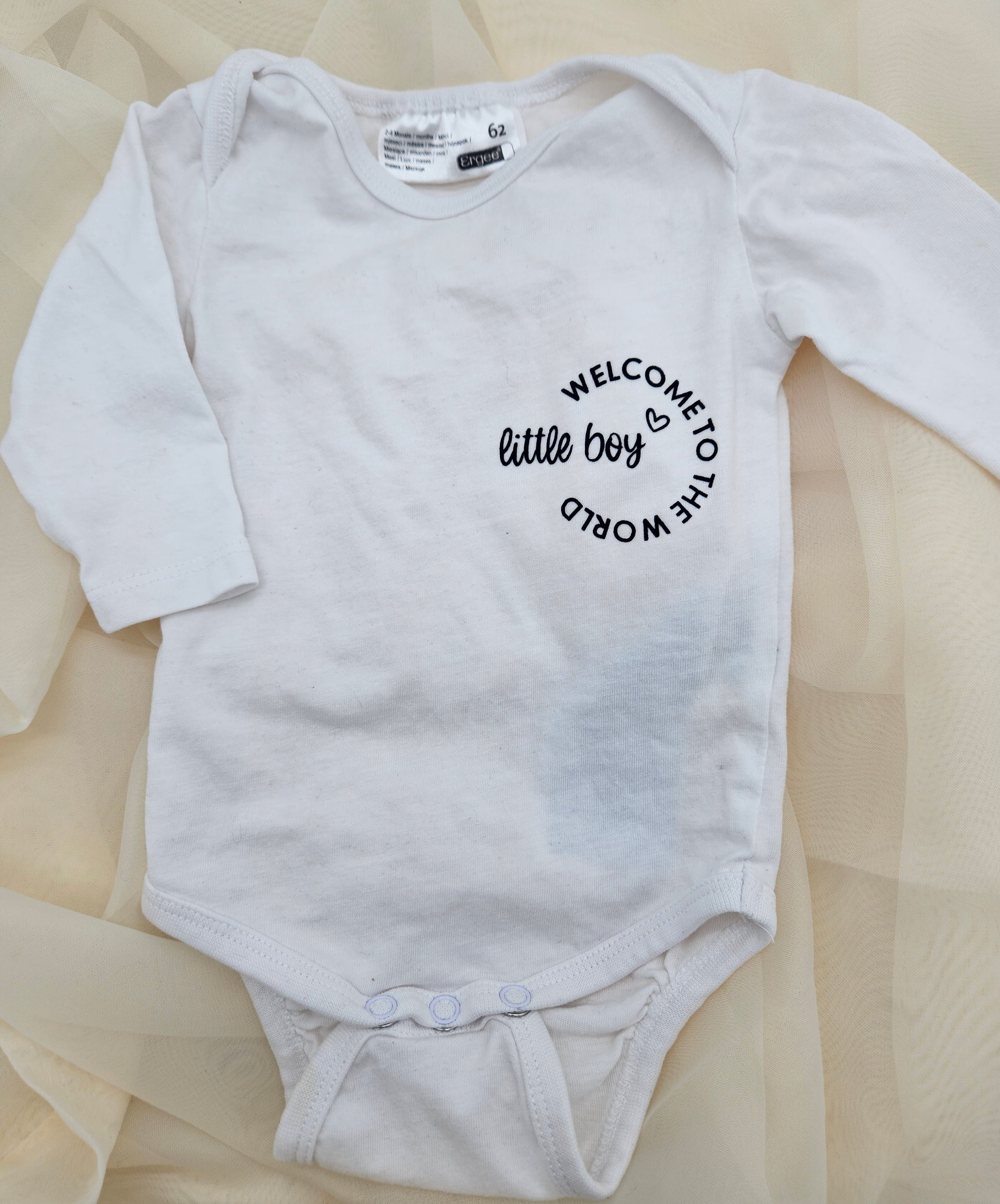 Wir bieten individuelle geplotterte Babybodys mit Wunschtext an.